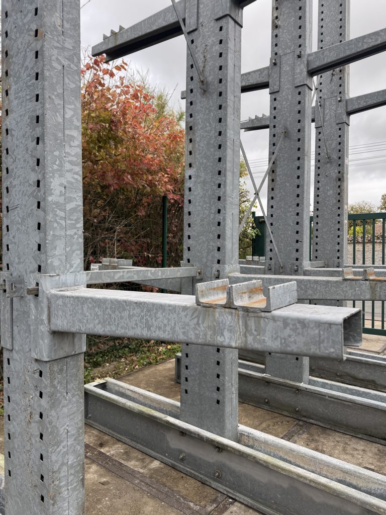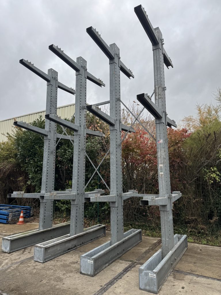 Avec une hauteur de 4,50 m et une profondeur de 1 m, ces cantilevers offrent une capacité de charge impressionnante de 900 kg par bras, permettant de stocker en toute sécurité tubes, profilés, barres ou autres matériaux longs. Montés en RC + 3, ils garantissent une stabilité optimale et une utilisation durable.
